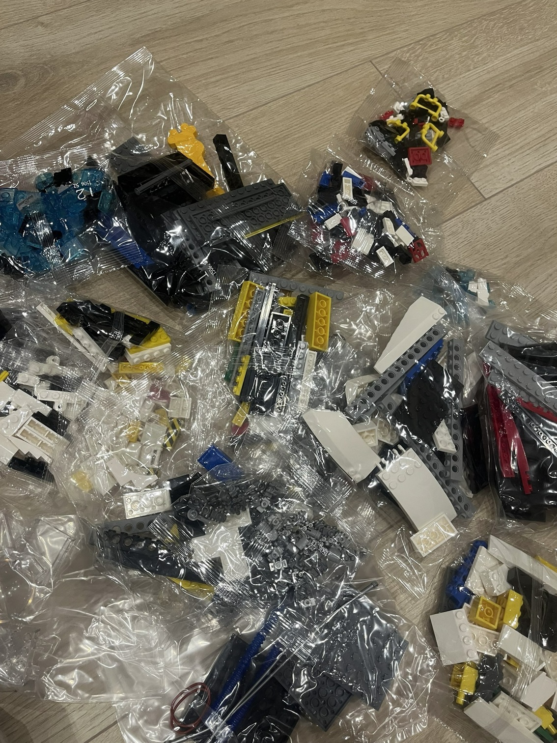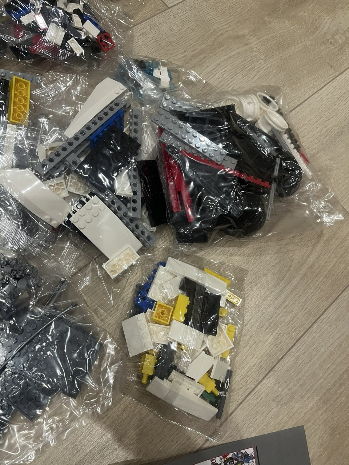 Doboz és márka jelzés nélkül. Összerakási útmutatóval, matricákkal, nyomtatott alkatrészekkel (adott szetteknél).