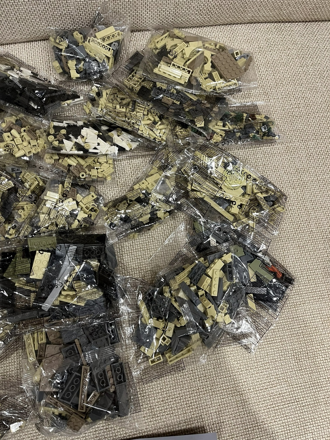 Doboz és márka jelzés nélkül. Összerakási útmutatóval, matricákkal, nyomtatott alkatrészekkel (adott szetteknél).