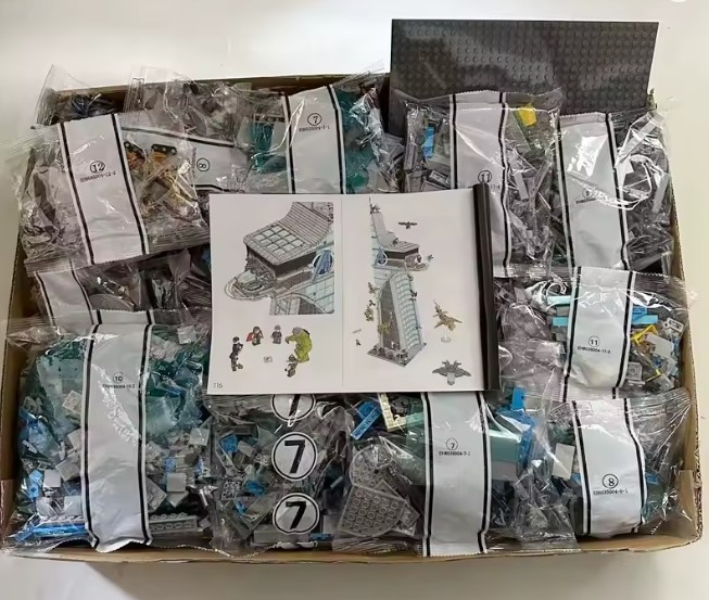Doboz és márka jelzés nélkül. Összerakási útmutatóval, matricákkal, nyomtatott alkatrészekkel (adott szetteknél).